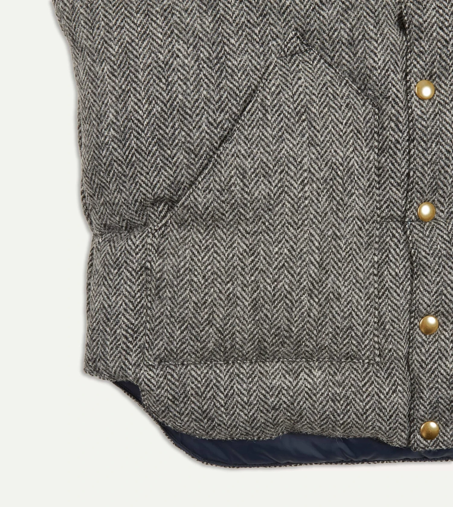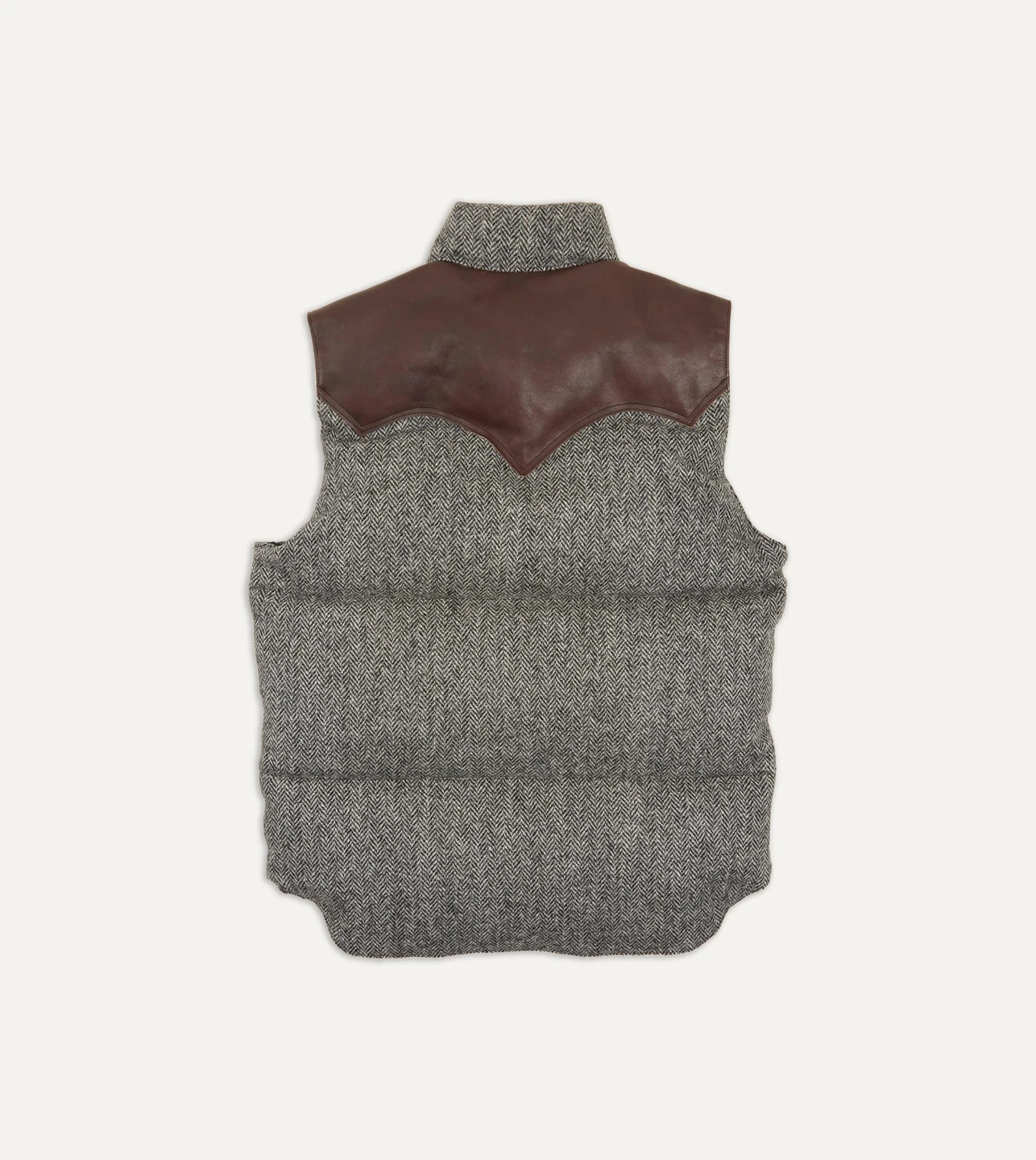 Made in Japan expressly for Drake’s to the same exacting standards as the American originals from the 1960s, the down vest from Rocky Mountain Featherbed features a single-piece Western style yoke and a 90/10 down to feather ratio filling for a stylish and warming addition to a winter wardrobe.