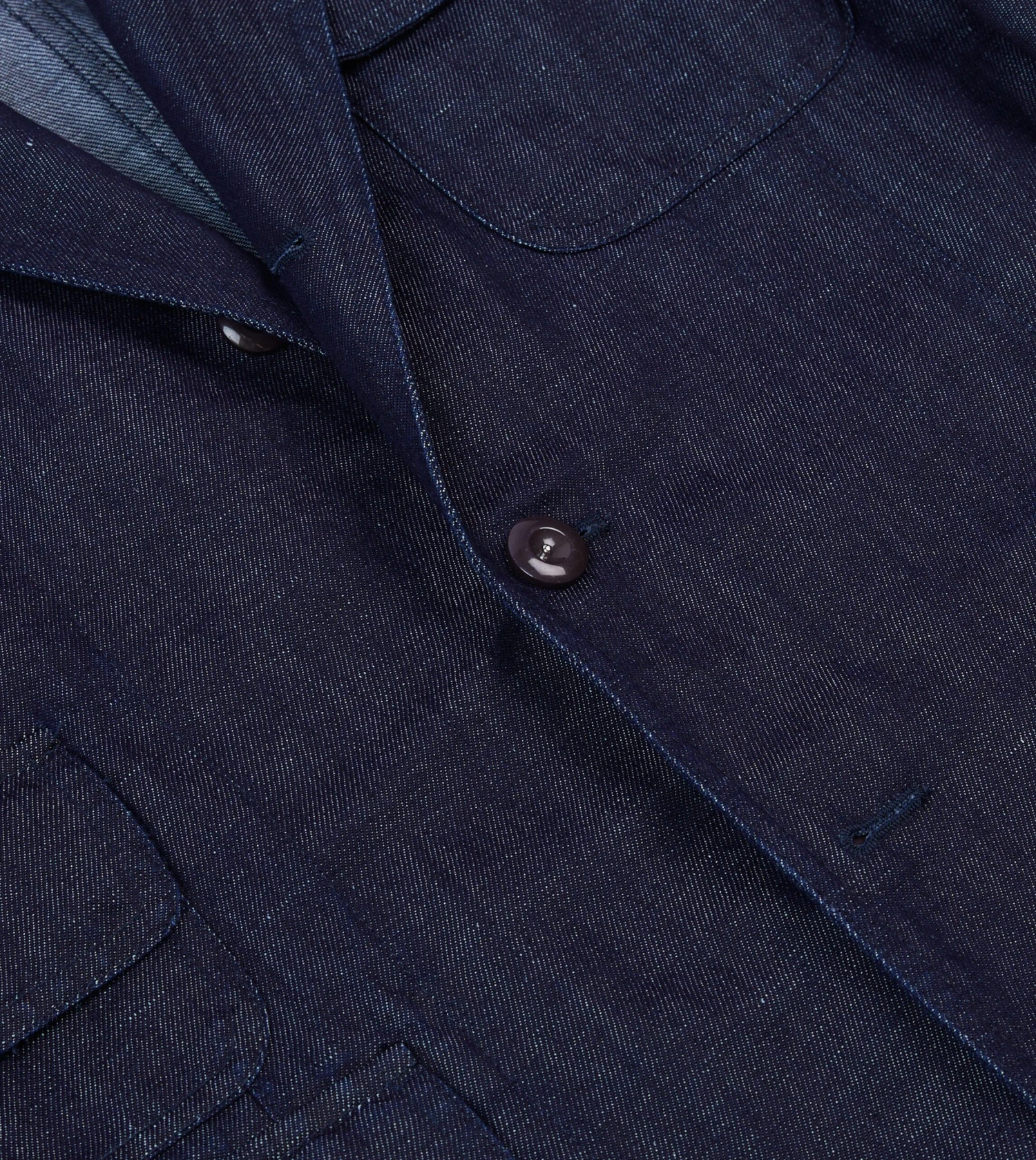 Cut from an enzyme dyed cotton canepa blend, we’ve also broadened the lapels out slightly, to make it a touch more redolent of the 1970s, with a functional keyhole valuehole for full fastening.