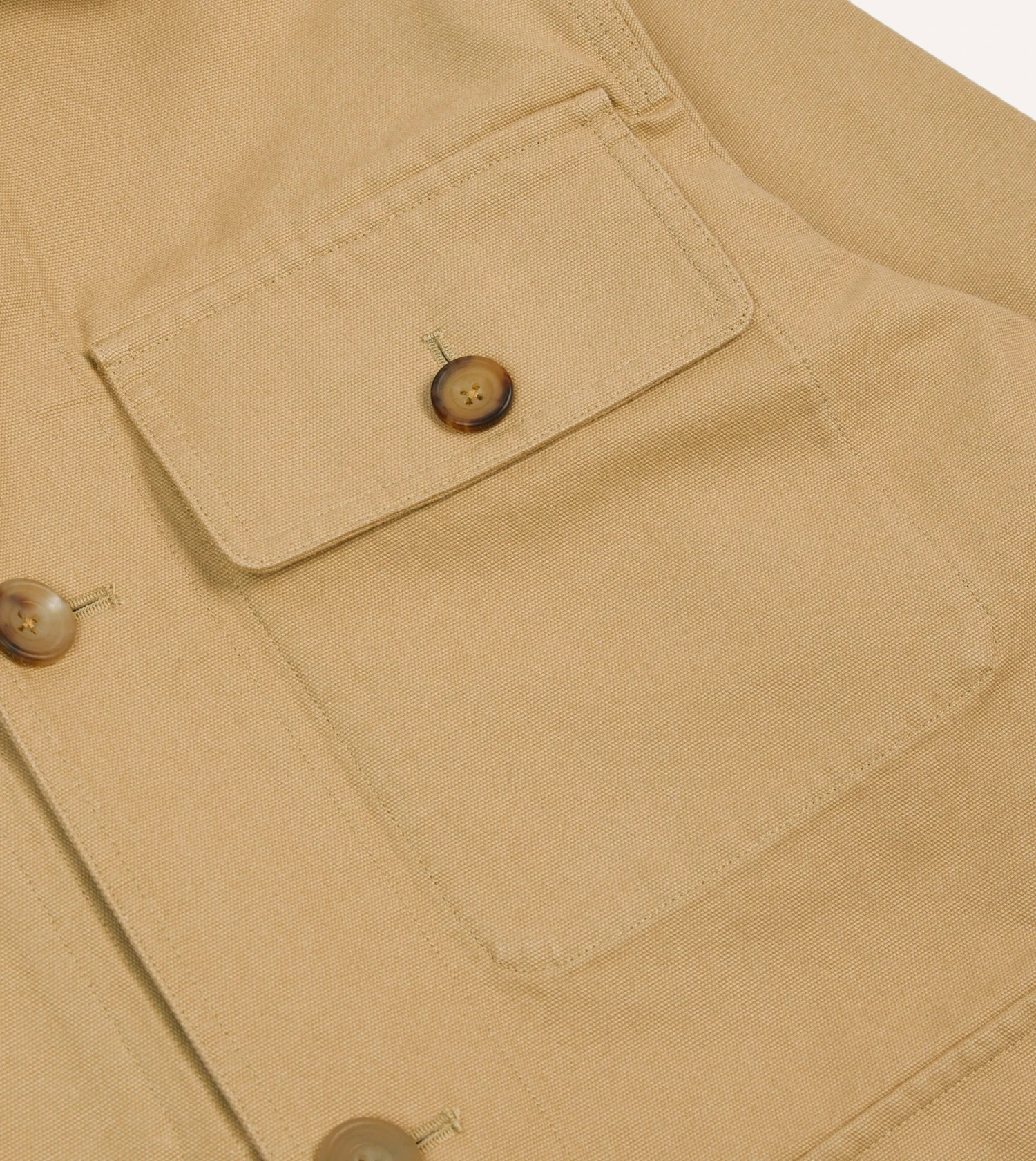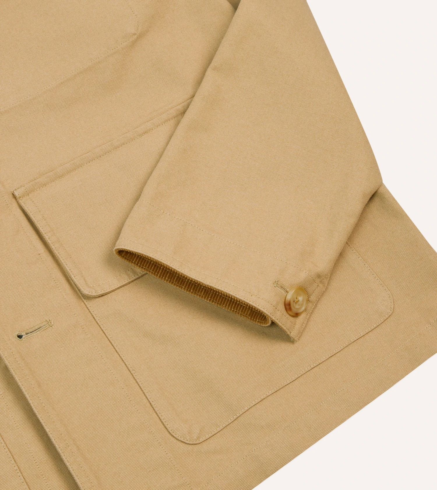 The safari jacket is constructed from a washed cotton for a soft, aged appearance, and features such pragmatic details as four patch and value-flap pockets and a 12 wale corduroy collar and turn-back cuffs.
