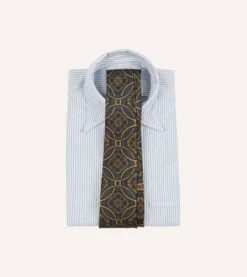 Green And Gold Diamond Medallion Print Madder Twill Silk Tie