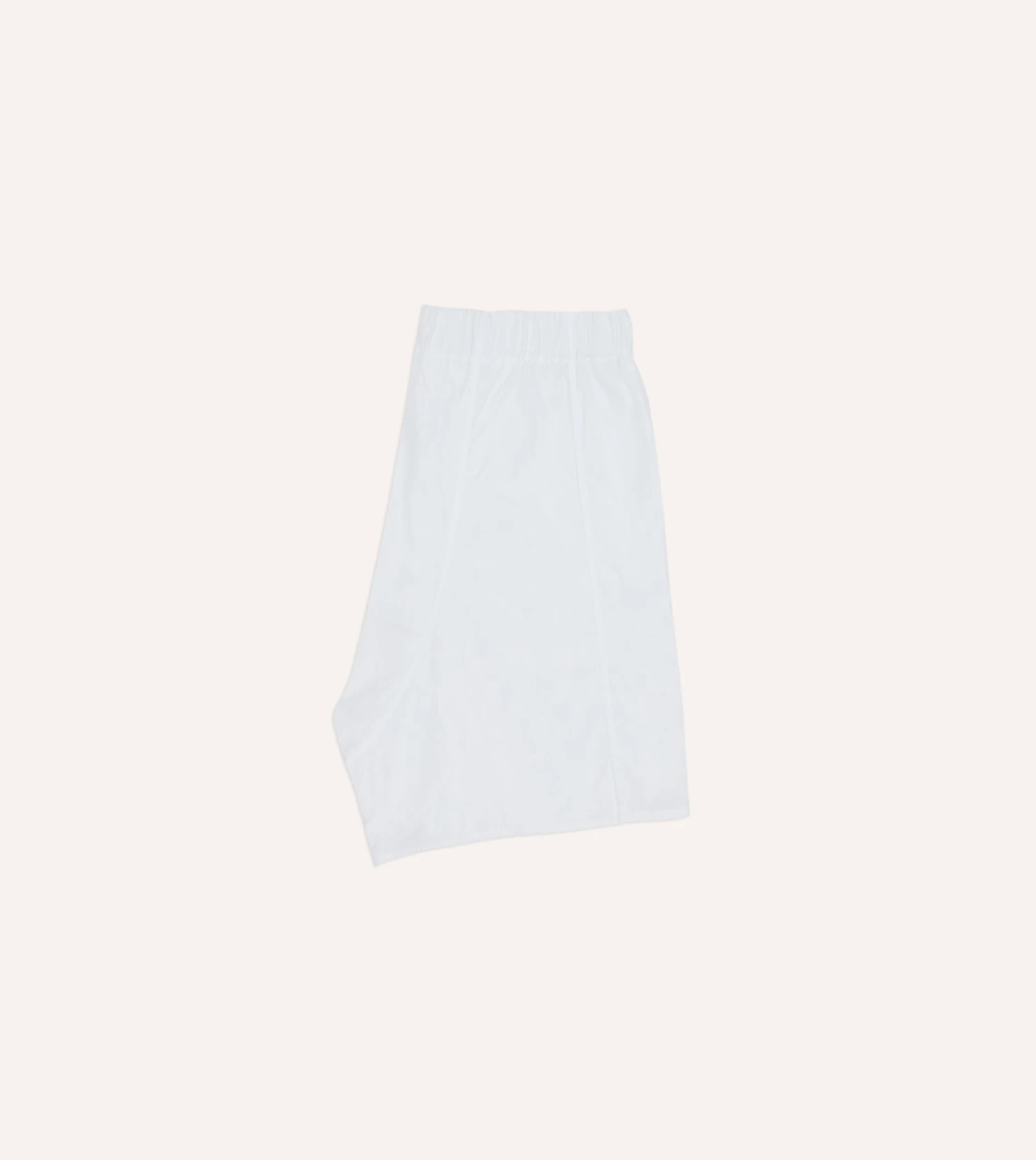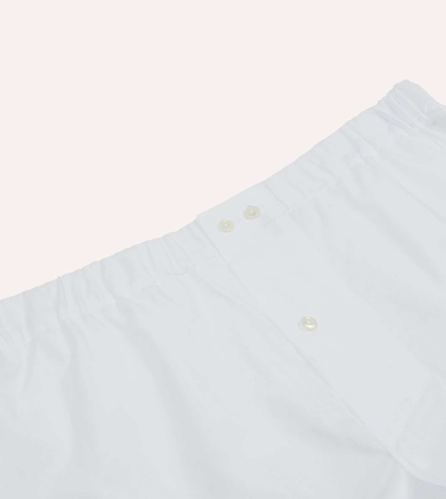 These boxer shorts follow the same rigorous construction methods as our shirts, and are composed of a lightweight cotton poplin, with mother of pearl values, a mid-rise waist and an elasticated waist.
