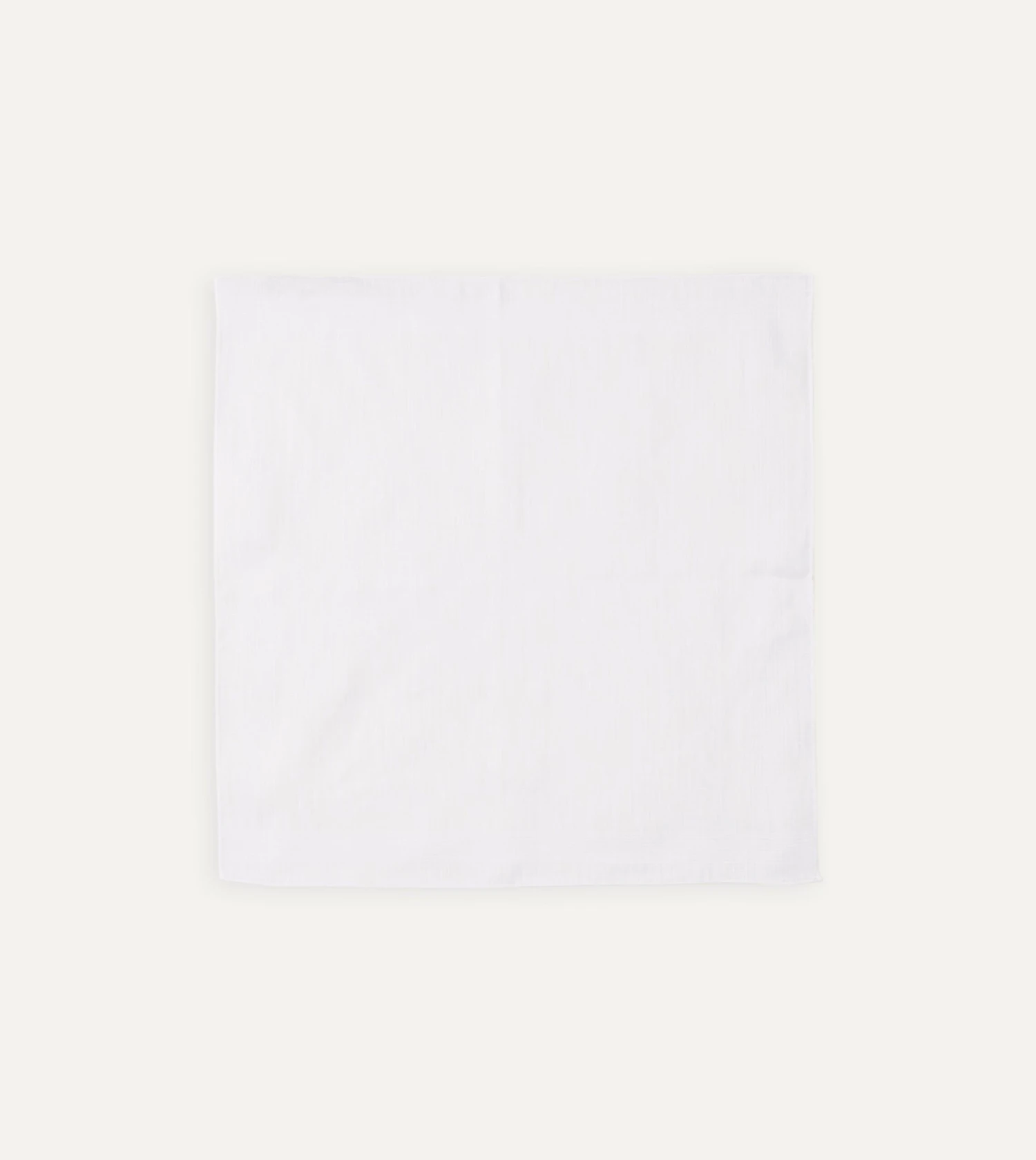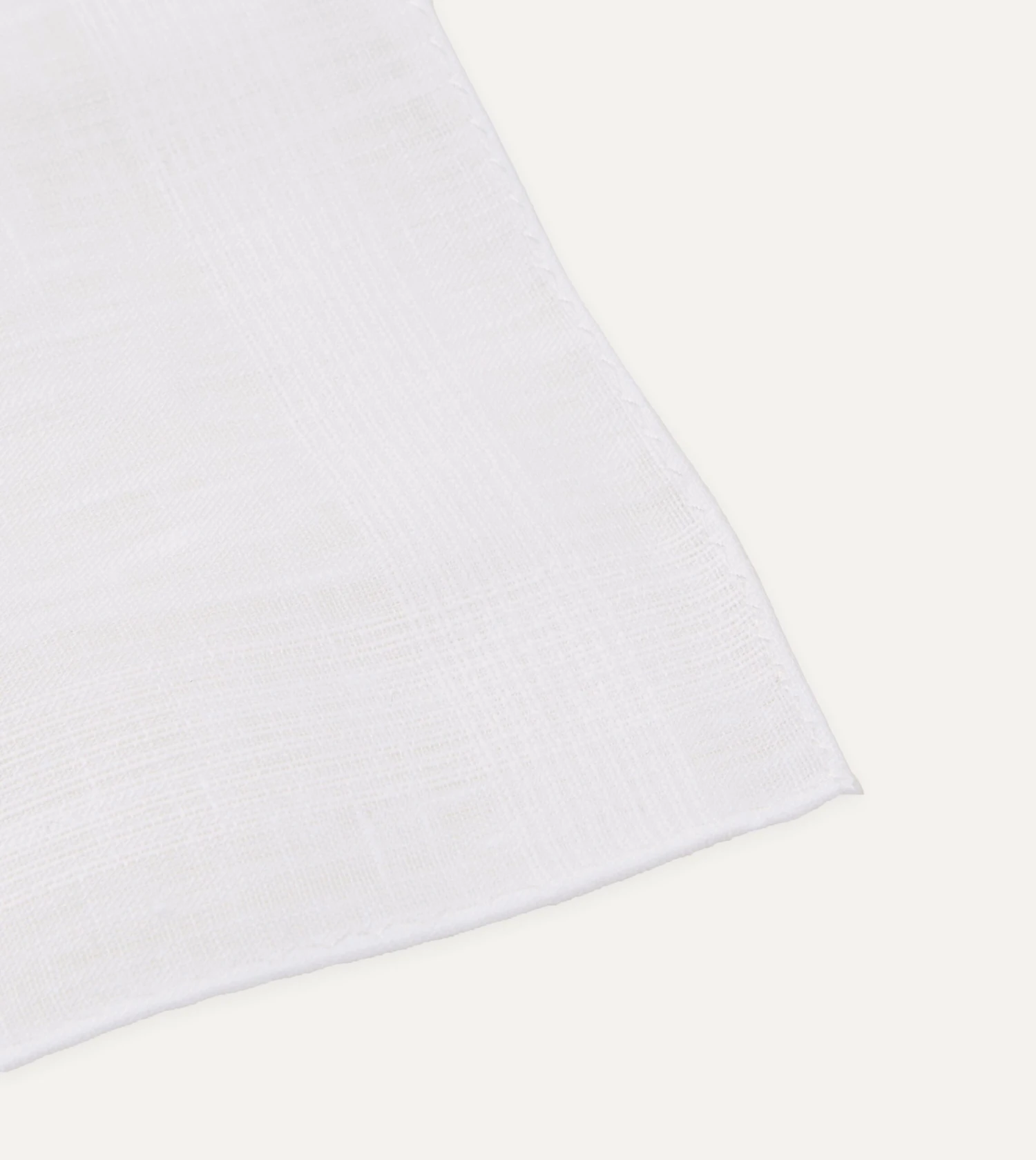 If you were to have just one pocket square in your drawer, this would be it. A plain white linen hank will add the finishing touch to any jacket you’d care to think of. This one has a tonal embroidered border for a little added interest.