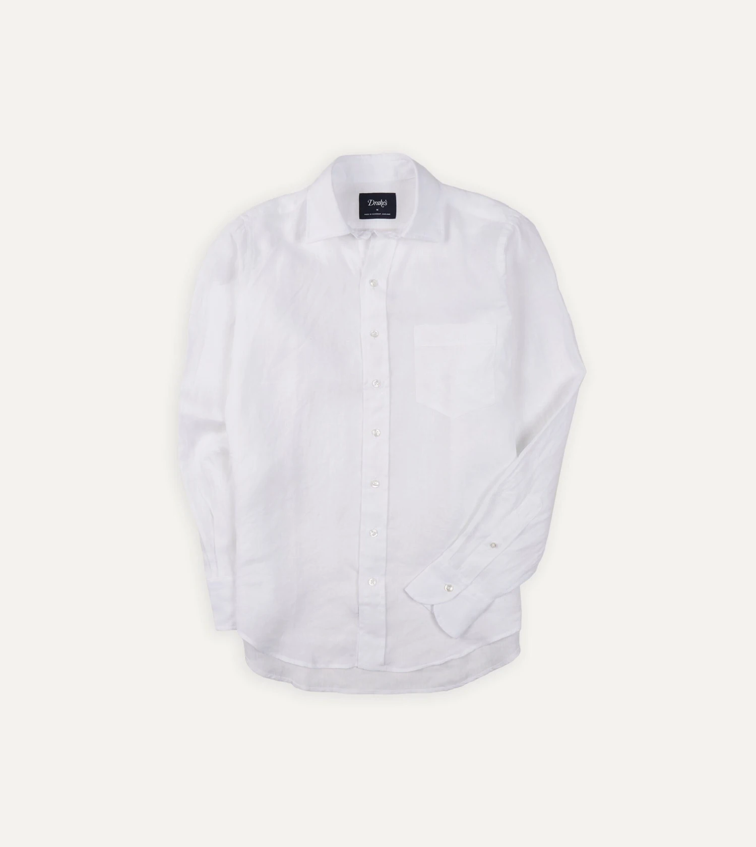 A casual shirt with an easy, versatile spread collar, cut from a textured linen.