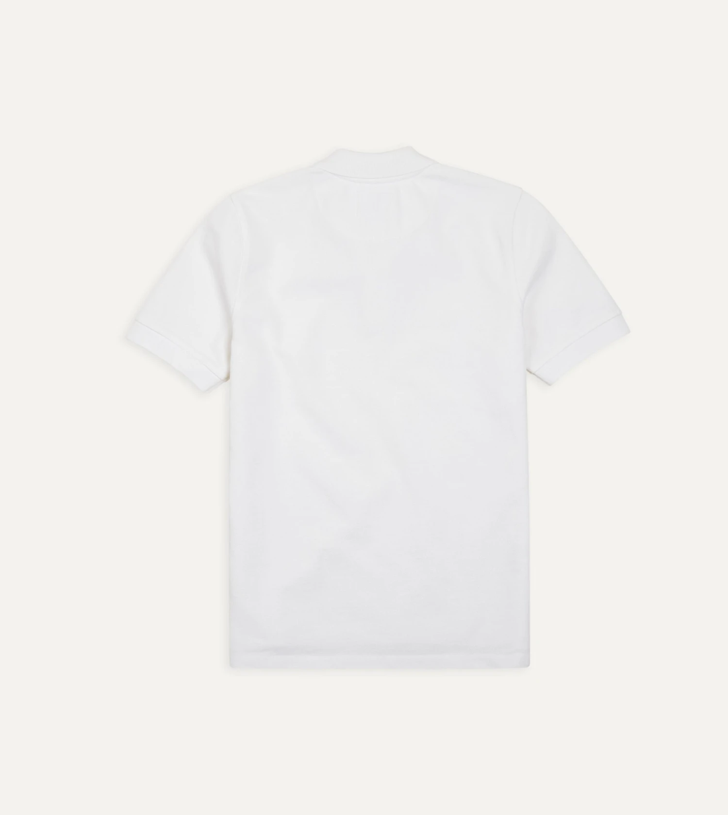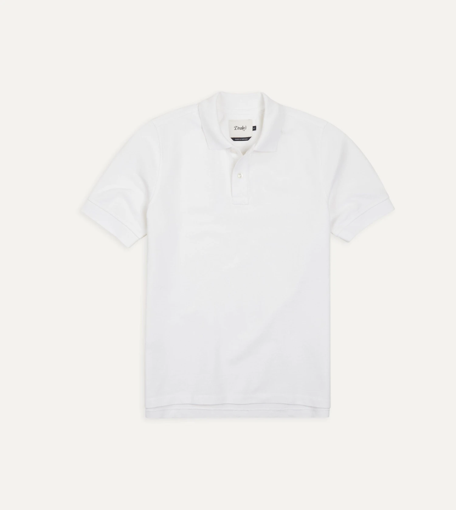 This version is constructed from a breathable Portuguese pique cotton, and features a stepped hem and mother of pearl values for a timeless, elegant essential.