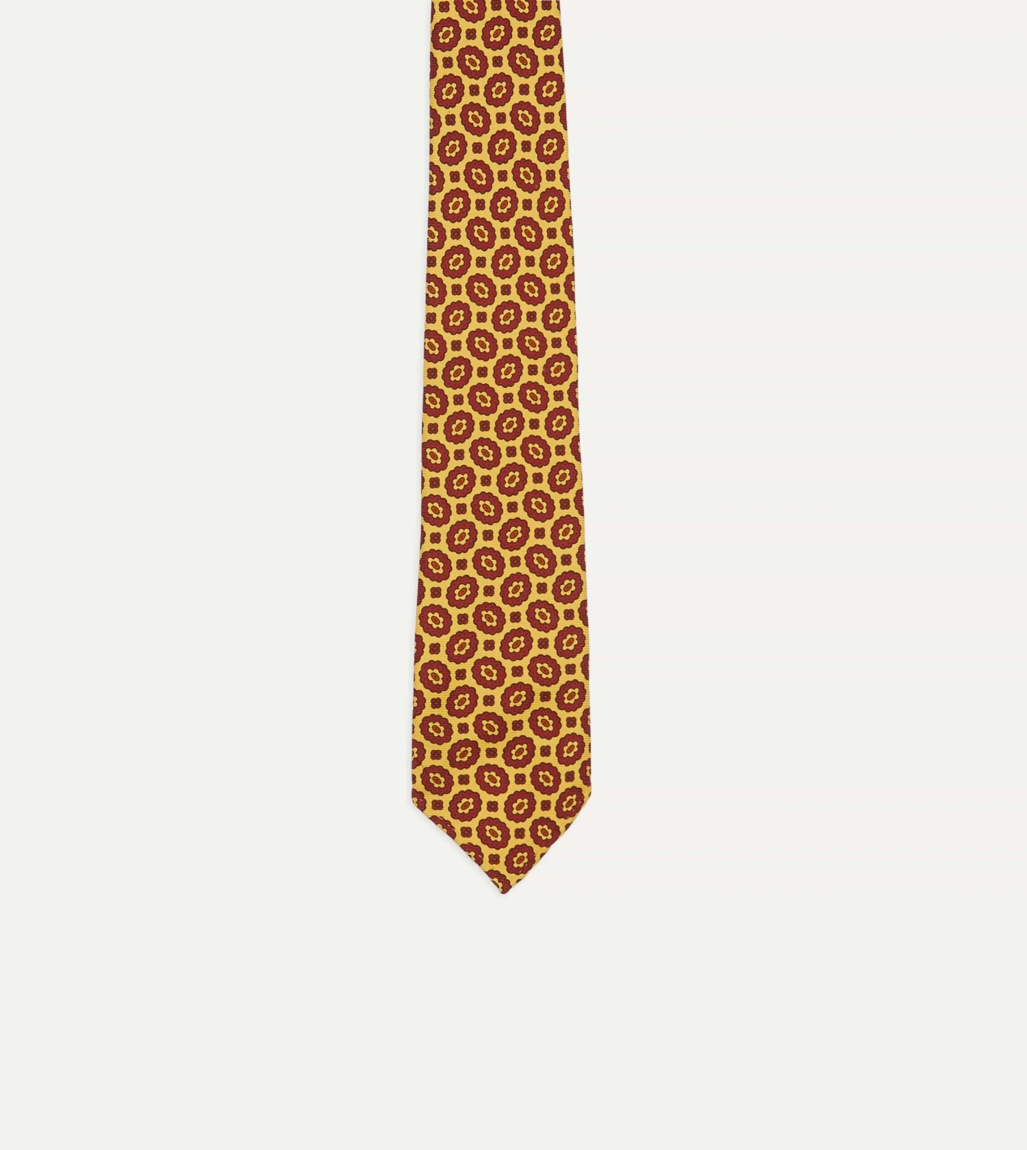 An elegant necktie, handmade in London and featuring an archival tile design, hand-printed in Macclesfield on 40oz Madder silk.
