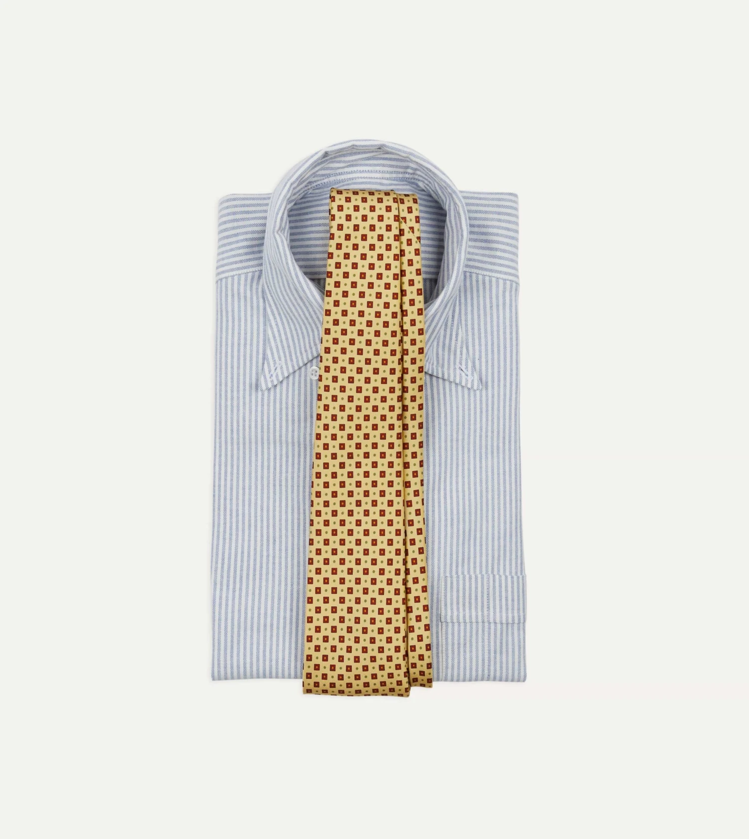 An ornate medallion design simply exudes elegance, particularly when printed on pure silk and hand rolled by our dedicated tiemakers in the heart of east London.